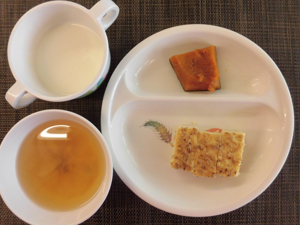 松風焼き、かぼちゃ甘煮、みそ汁(大根・しめじ)、ヨーグルト